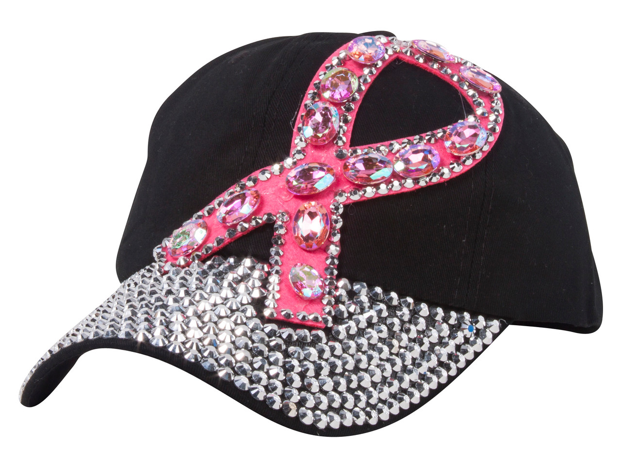 Top Headwear Breast Cancer Awareness Pink Ribbon Studded Baseball Cap